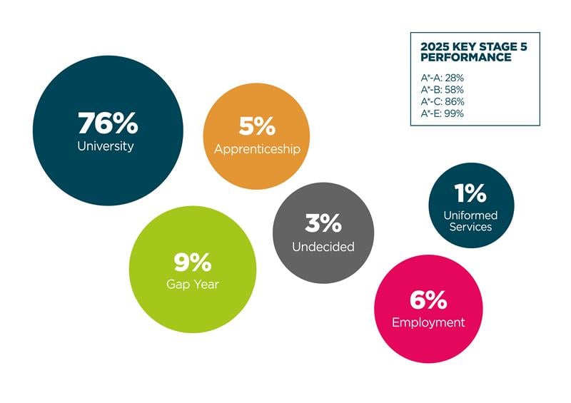Our focus on subject passion and excellence, underpinned by comprehensive support for all students, means that Sixth Form at King Edward’s produces consistently high academic outcomes which has put us in the top 3 in Northumberland for the last 5 years for both attainment and progress.